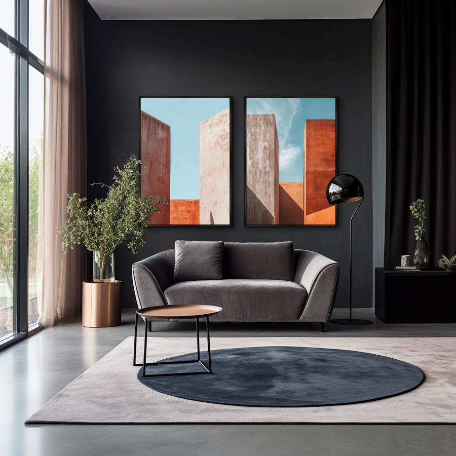 Большие картины следует размещать в центре комнаты на высоте 160 сантиметров. Это оптимальная точка, позволяющая рассмотреть всю композицию с расстояния нескольких метров.