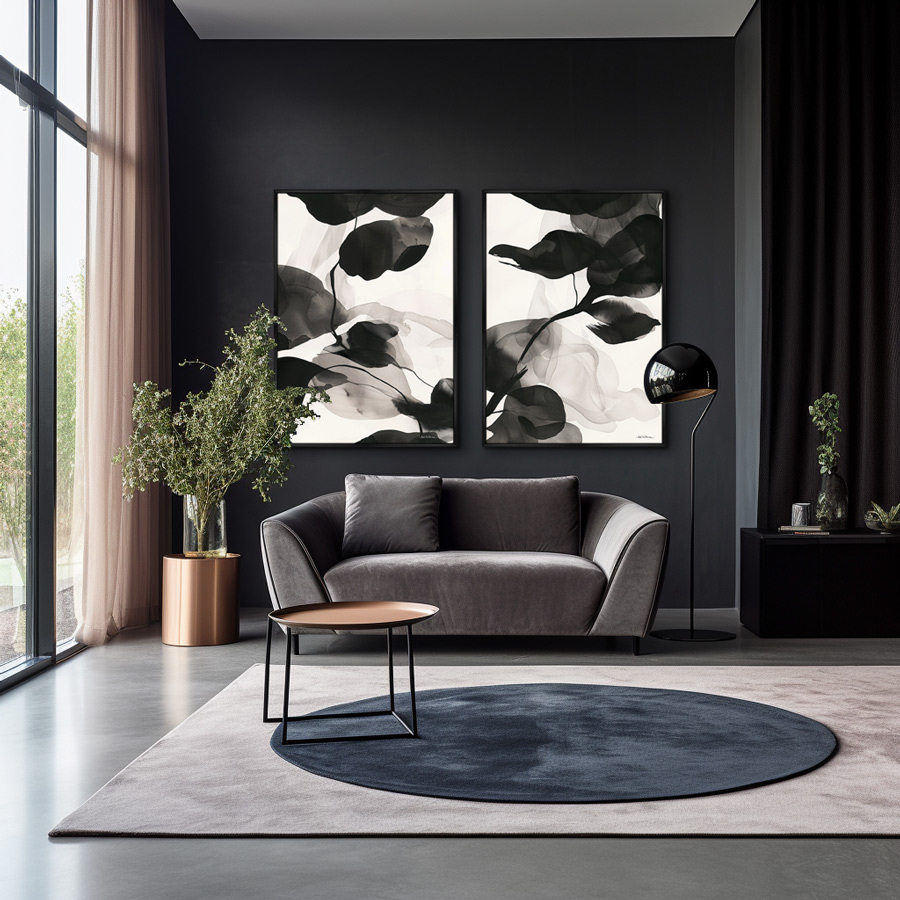 Большие картины следует размещать в центре комнаты на высоте 160 сантиметров. Это оптимальная точка, позволяющая рассмотреть всю композицию с расстояния нескольких метров.