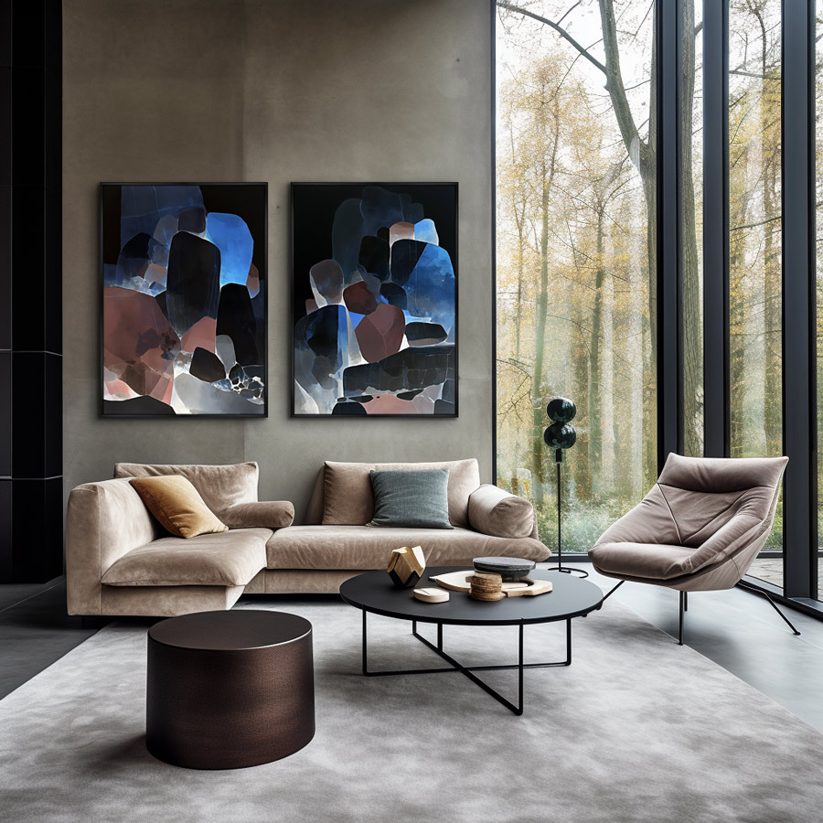 Художник: ArtNoMore. Размер каждой картины: 75х105см. Репродукция картины на холсте из хлопка. Изображение печатается на принтере для профессиональной художественной печати картин, что обеспечивает высокую детализацию, насыщенные цвета и максимальную реалистичность изображения. Холст натягивается на деревянный подрамник и обрамляется декоративной рамой из полистирола. На задней стороне репродукции предусмотрено удобное настенное крепление «крокодил». Цвет рамы – чёрный.