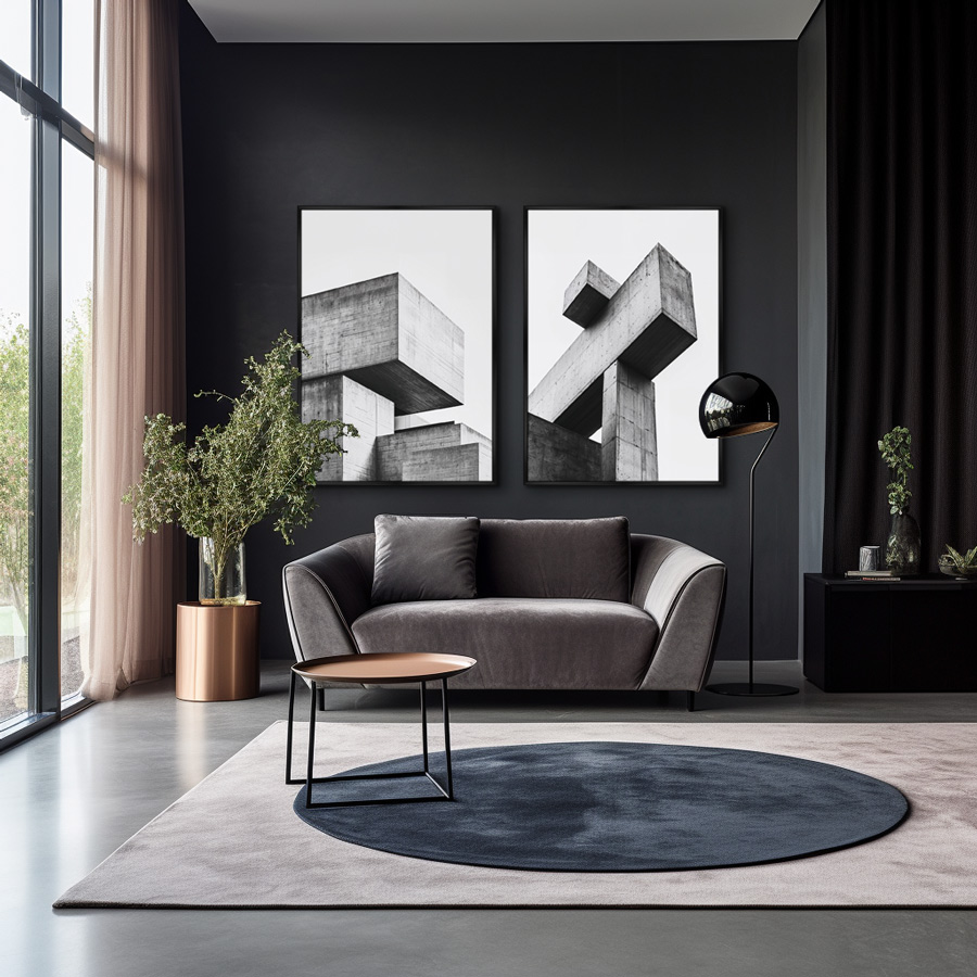 Большие картины следует размещать в центре комнаты на высоте 160 сантиметров. Это оптимальная точка, позволяющая рассмотреть всю композицию с расстояния нескольких метров.