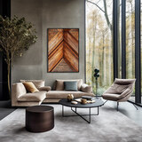 Большие картины следует размещать в центре комнаты на высоте 160 сантиметров. Это оптимальная точка, позволяющая рассмотреть всю композицию с расстояния нескольких метров.