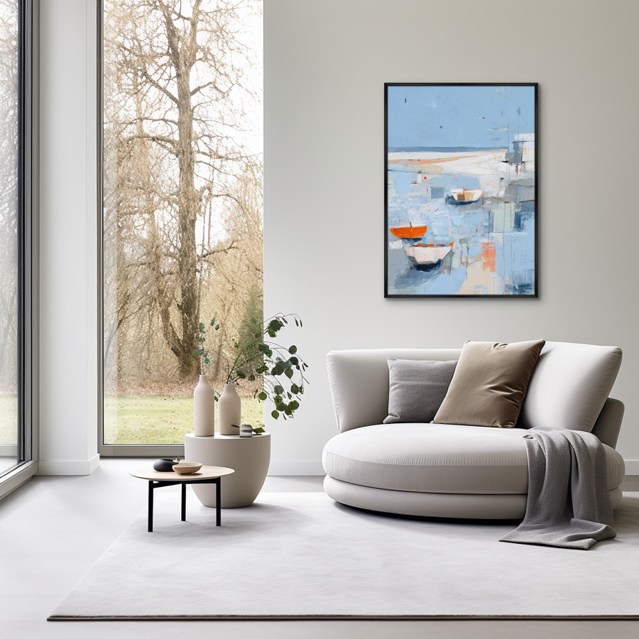 Большие картины следует размещать в центре комнаты на высоте 160 сантиметров. Это оптимальная точка, позволяющая рассмотреть всю композицию с расстояния нескольких метров.