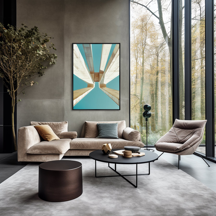 Большие картины следует размещать в центре комнаты на высоте 160 сантиметров. Это оптимальная точка, позволяющая рассмотреть всю композицию с расстояния нескольких метров.