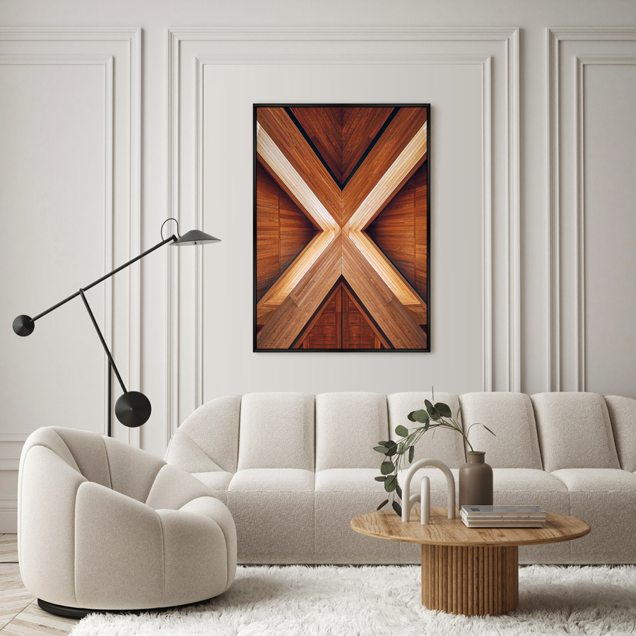 Большие картины следует размещать в центре комнаты на высоте 160 сантиметров. Это оптимальная точка, позволяющая рассмотреть всю композицию с расстояния нескольких метров.