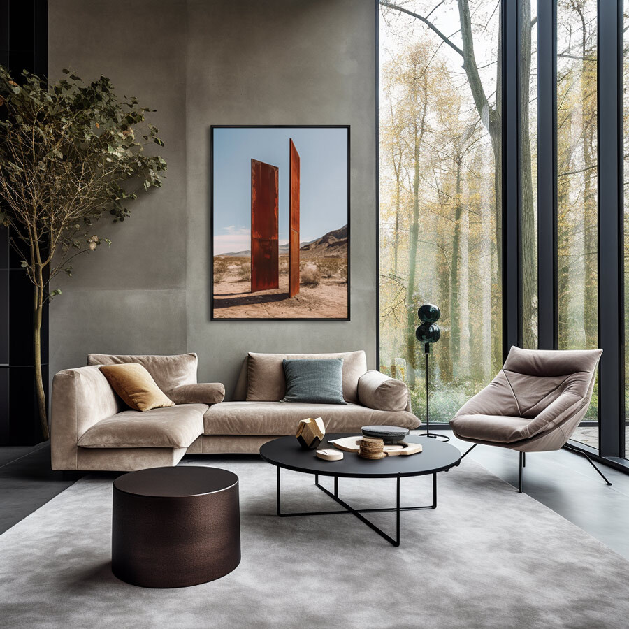 Большие картины следует размещать в центре комнаты на высоте 160 сантиметров. Это оптимальная точка, позволяющая рассмотреть всю композицию с расстояния нескольких метров.