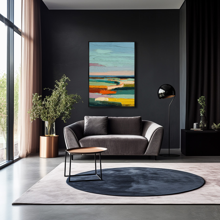 Горизонтальные картины визуально удлиняют стену, а вертикальные - увеличивают потолки. Т.о., горизонтальные картины следует размещать над диваном или столом, а вертикальные - на узких стенах.