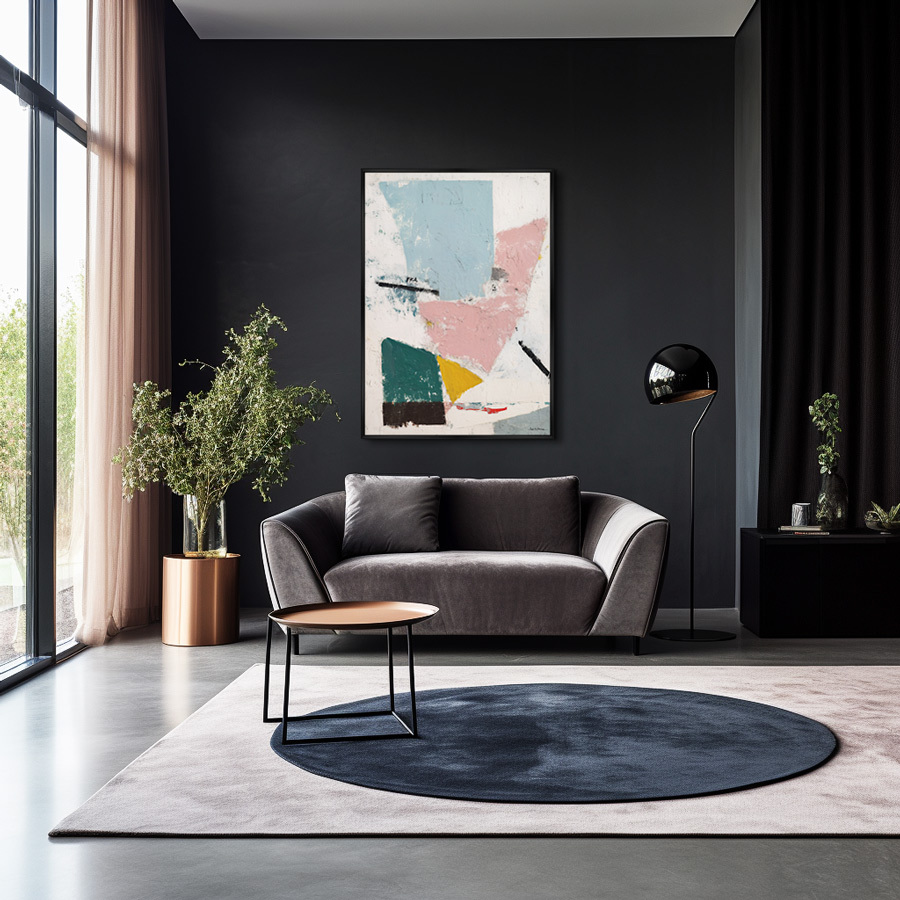 Большие картины следует размещать в центре комнаты на высоте 160 сантиметров. Это оптимальная точка, позволяющая рассмотреть всю композицию с расстояния нескольких метров.
