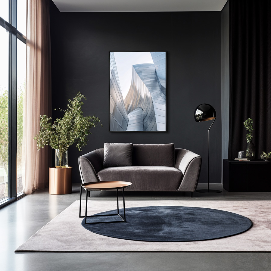 Большие картины следует размещать в центре комнаты на высоте 160 сантиметров. Это оптимальная точка, позволяющая рассмотреть всю композицию с расстояния нескольких метров.