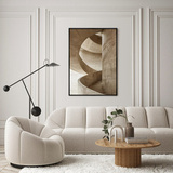 Большие картины следует размещать в центре комнаты на высоте 160 сантиметров. Это оптимальная точка, позволяющая рассмотреть всю композицию с расстояния нескольких метров.